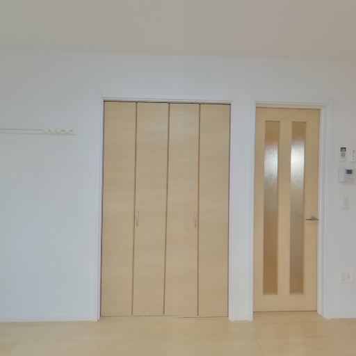 • 収納スペースあり(確度90%):折れ戸タイプのクローゼットが壁面に設けられている。