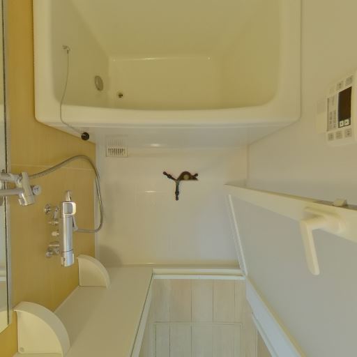 • 手すりや追い焚きリモコンの存在(確度64%):壁面にリモコンパネルがあり、安全用のバーやフックも確認できる。