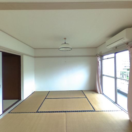 和室スペースの併設(確度80%):畳敷きの空間が隣接しており、引き戸で仕切れる。エアコンと照明も確認できる。