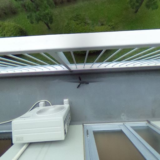 エアコン室外機設置スペース(確度75%):バルコニー床に室外機が設置されており、配管も既設。