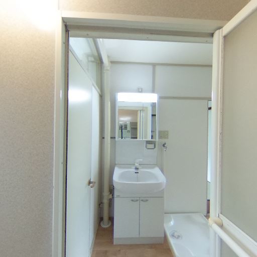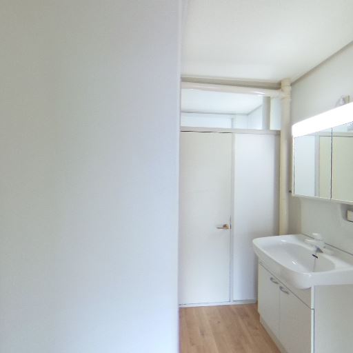 室内洗濯機置き場あり(確度82%):洗面台横に洗濯機パンが確認できる。