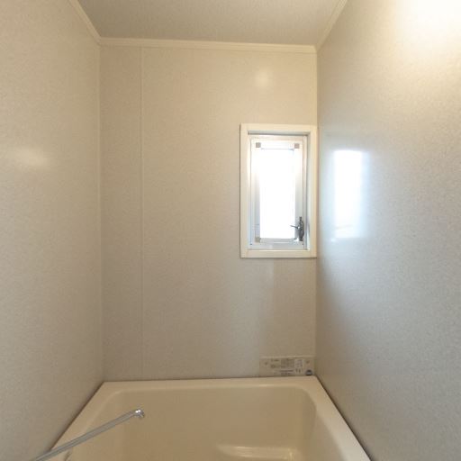 浴室に窓あり(確度87%):浴槽奥に小窓があり、換気や自然光の取り込みができる。