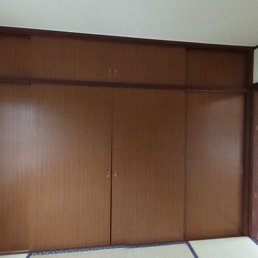 収納量(確度83%):壁一面の引き戸収納があり上部にも天袋が見える。