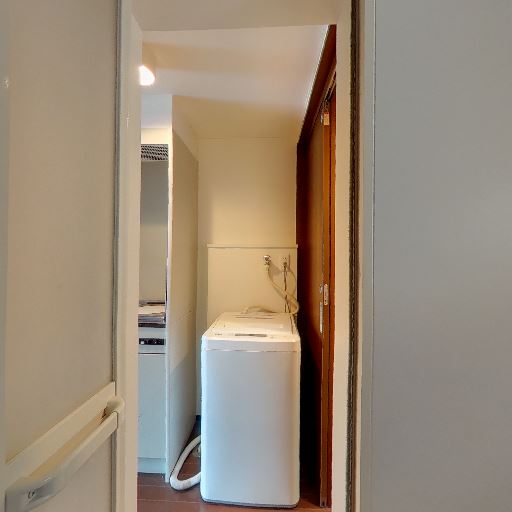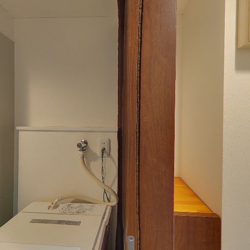 洗濯機置き場が室内に確保(確度88%):引き戸の内側に洗濯機と給水・排水口が設置されている。