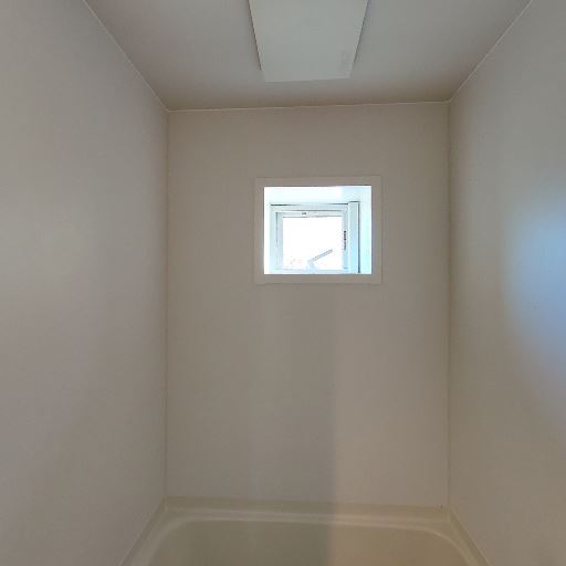 浴室に窓があり換気しやすい(確度86%):浴槽側の壁に小窓があり、外光が入り自然換気が可能。