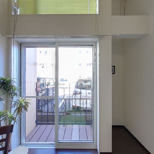 採光とバルコニー(確度82%):大きな掃き出し窓の先にバルコニーが見え、日中の明るさが期待できる。
