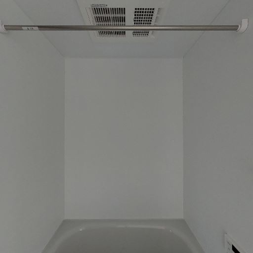 浴室乾燥・物干しバーあり(確度86%):天井に換気乾燥機の吹き出し口と物干しバーが設置されている。室内干しができ、雨天時や花粉の季節に便利。