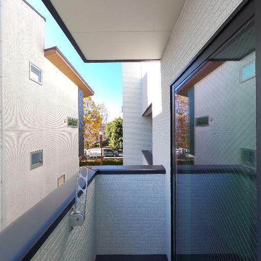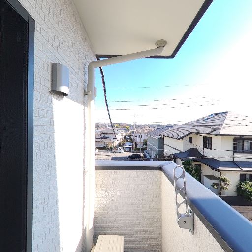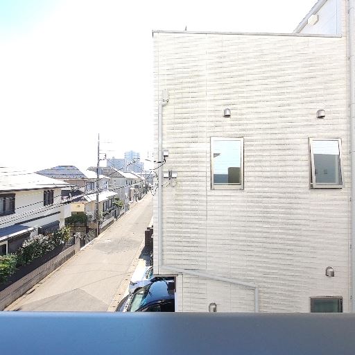 眺望と抜け感(確度78%):バルコニーから道路と住宅街が見渡せ、前面の建物との距離もある程度確保されている。圧迫感は少ない。