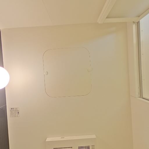 • 天井点検口と照明(確度70%):天井に点検口と照明が確認できる。設備メンテナンス性に配慮。