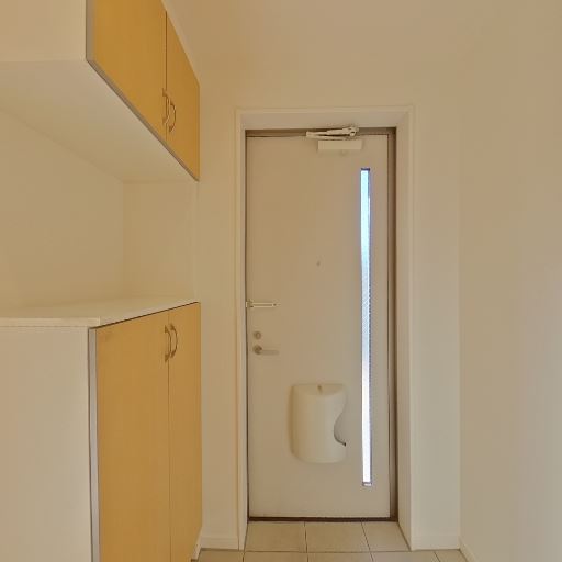 • 採光の良い玄関(確度79%):玄関ドアに縦長のスリット採光と、室内側にも強い日差しが差し込んでいる。