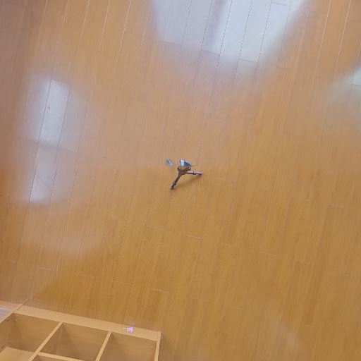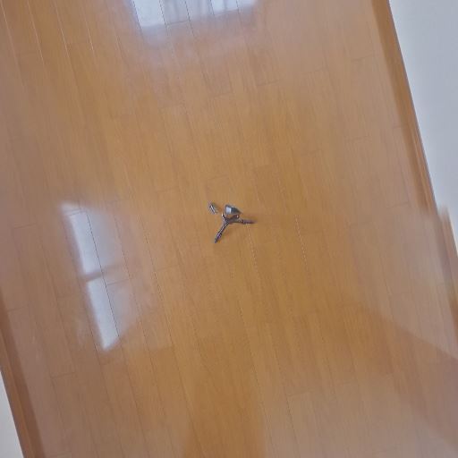 • 床コンディション(確度83%):フローリングは艶があり、目立つ傷や汚れは見当たらない。中央に鍵が置かれているのみ。