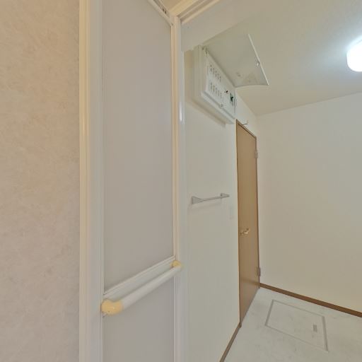 • 洗面室との一体感(確度73%):引き戸の先に洗面台が見え、脱衣所が隣接している。