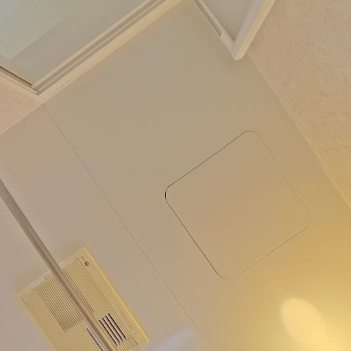 • 浴室乾燥機・換気設備(確度78%):天井に換気扇が設置されている。物干しポールもある。