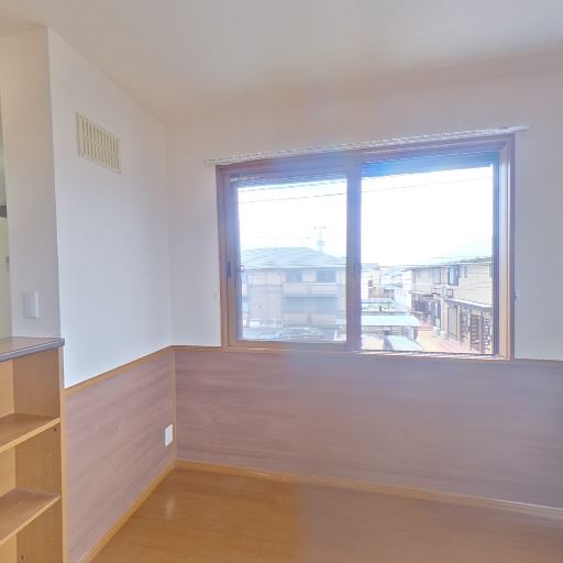 • 採光の良さ(確度86%):掃き出し窓と腰高窓の2方向に窓があり、窓外は開けていて室内が明るい。