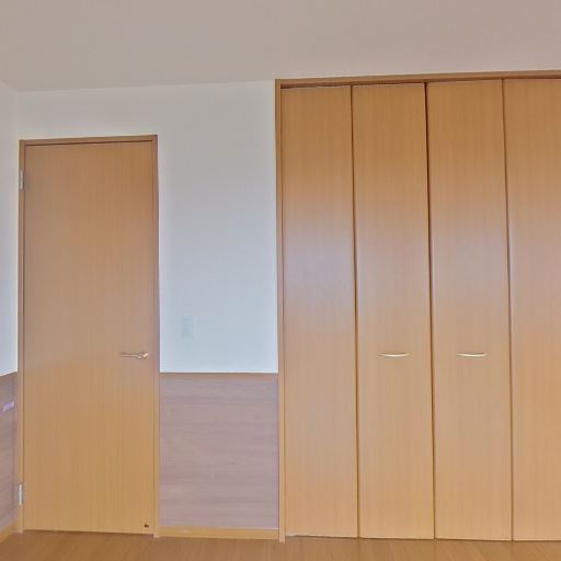 • 収納量(確度78%):折れ戸の大型クローゼットが壁一面にある。