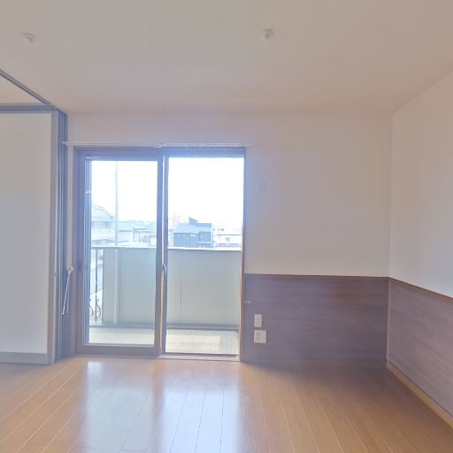 • バルコニー付き(確度82%):掃き出し窓の先に手すりと床が見え、バルコニーが確認できる。