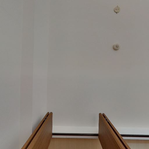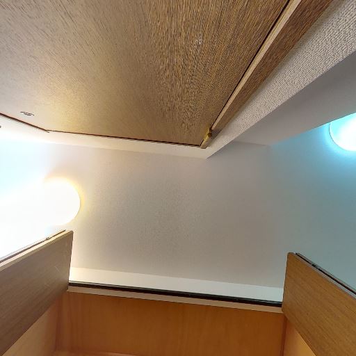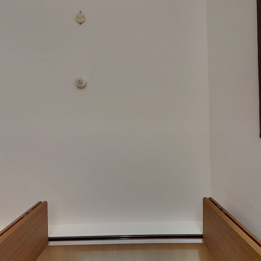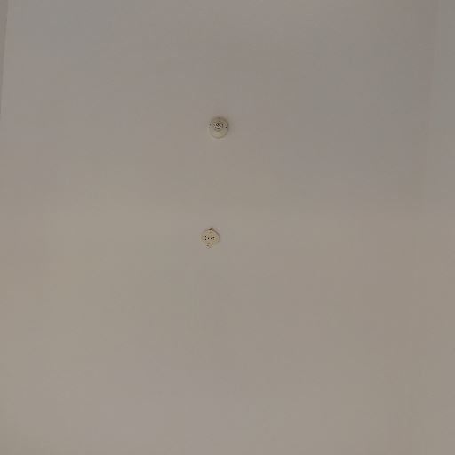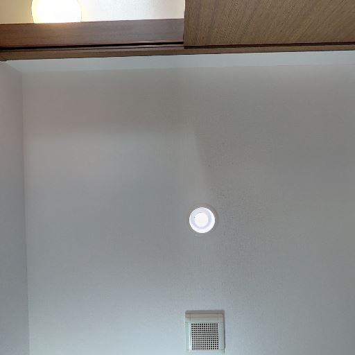 • 天井の設備(確度78%):天井中央付近に火災報知器と照明用の配線ボックスらしき金具が見える。