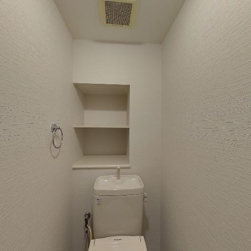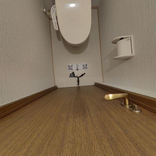 • トイレ個室である(確度95%):便器・紙巻き器・換気口・天井照明が確認でき、狭めの独立トイレ空間とわかる。