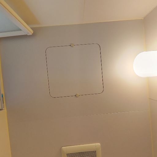 • 換気・照明が十分そう(確度74%):天井に換気口、壁面に照明器具が確認できる。