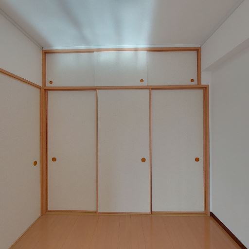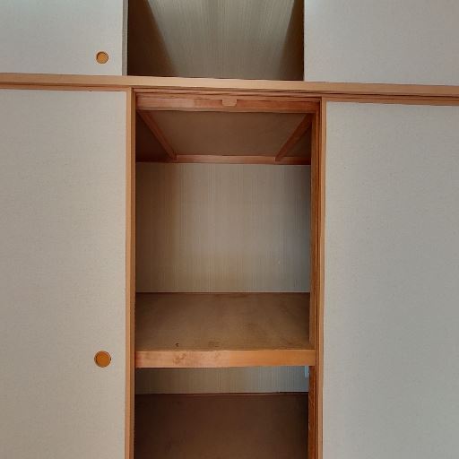• 押入れ収納が充実(確度90%):天袋付きの引き戸収納があり、中棚も備えられている。