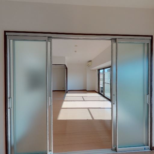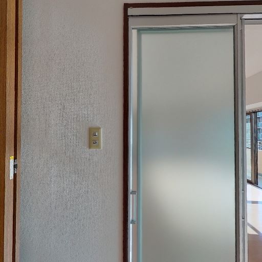 • 引き戸で空間を仕切れる(確度78%):すりガラスの引き戸があり、隣室との間仕切りが可能。視線は和らげつつ光は通すタイプ。