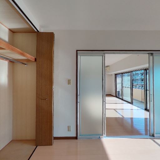 • 収納が充実(確度78%):壁一面の折れ戸タイプのクローゼットがある。