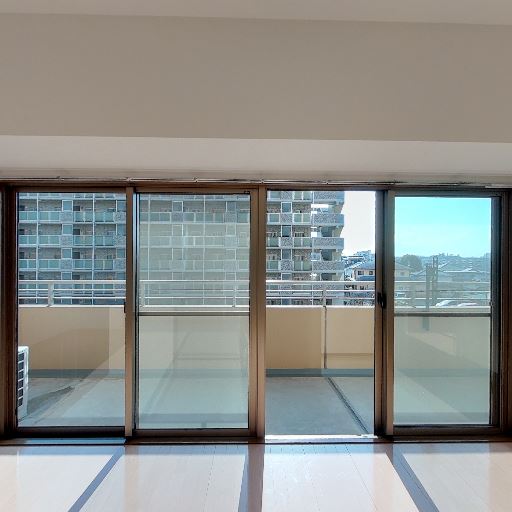 • バルコニーと外部景観(確度70%):バルコニーが広めで、前面はマンション群と開けた眺望。目線の先に建物がありプライバシー配慮は必要。
