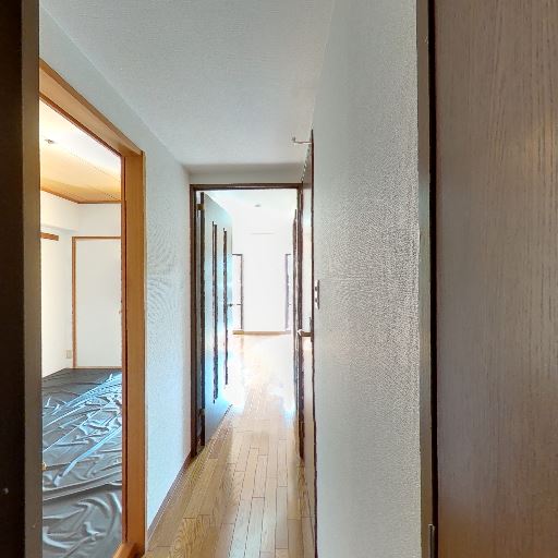 • 明るい廊下動線(確度80%):玄関から伸びる廊下の先に採光があり、床の反射から日中は比較的明るいと推測される。
