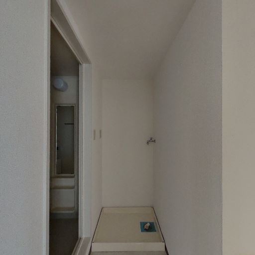 • 洗濯機置き場の位置(確度87%):床面に防水パンと給排水口があり、洗面スペースの一角に洗濯機置場が設けられている。