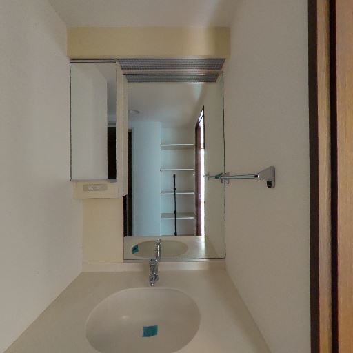 • 浴室が近接(確度78%):開口部の向こうに浴室の浴槽や鏡が見えるため、洗面・脱衣→浴室の動線が短い。