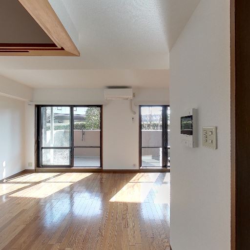 • 採光がとても良い(確度90%):掃き出し窓が2面あり、室内の床に強い日差しが差し込んでいる。