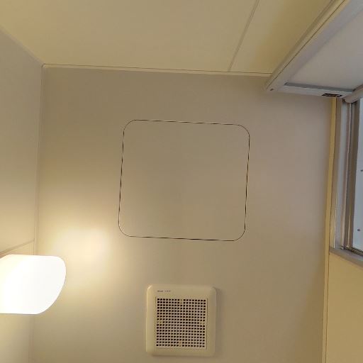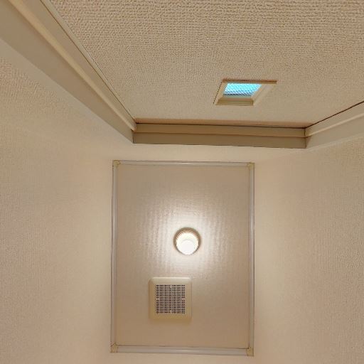 換気設備・照明が天井に設置(確度84%):天井に換気扇と照明器具が見える。