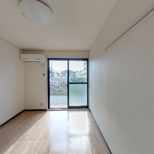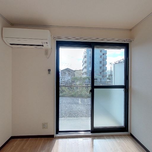 エアコン設置済み(確度92%):窓の左上に壁掛けエアコンが見える。