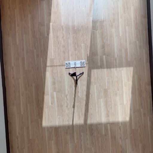 採光の良さ(確度90%):バルコニー付きの大きめの掃き出し窓から日光が入り、床に強い反射が見える。