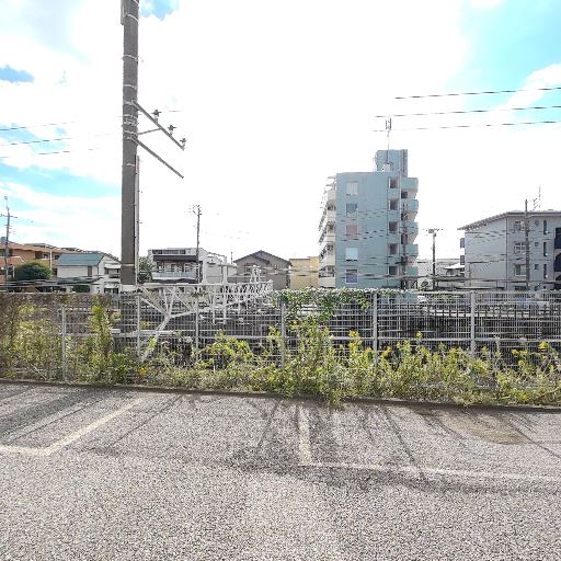前面の抜け感と眺望(確度75%):敷地前は線路か用水路のようなオープンスペースと低層~中層の建物で、視界が抜けている。