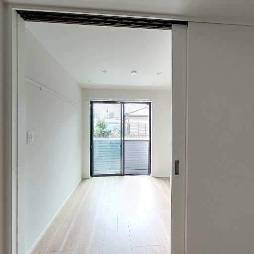 引き戸で空間を仕切れる(確度74%):大きな引き戸が確認でき、居室と他スペースを間仕切りできる。