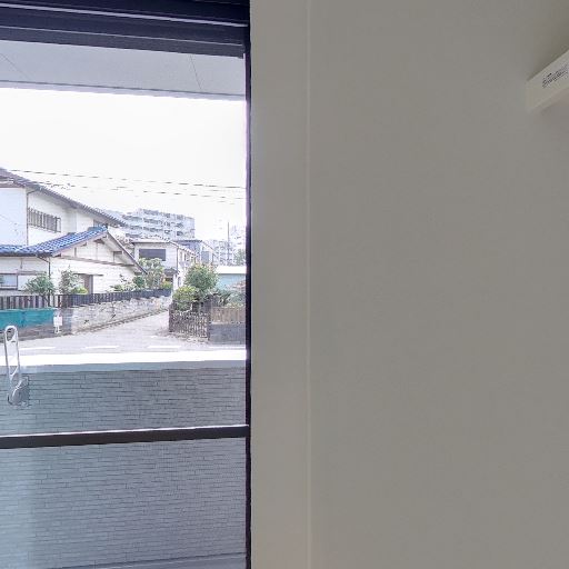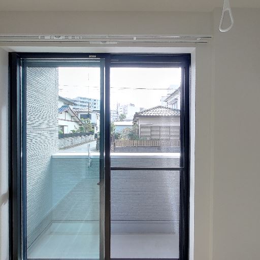バルコニー付きの掃き出し窓(確度86%):大きな引き違い窓の外に小さめのバルコニーがあり、物干しや換気に使えそう。
