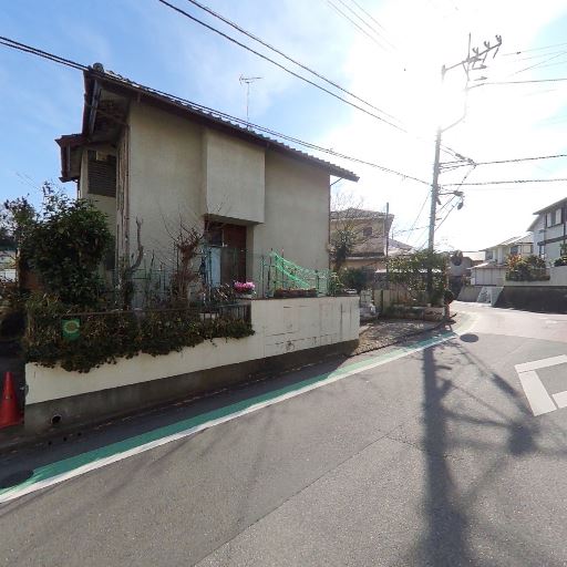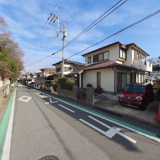 周辺は戸建て中心の落ち着いた住宅街(確度78%):周囲に戸建てが並び、街路樹や植栽が整っている。