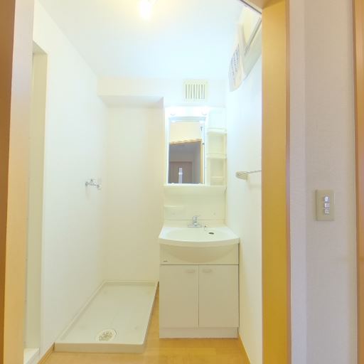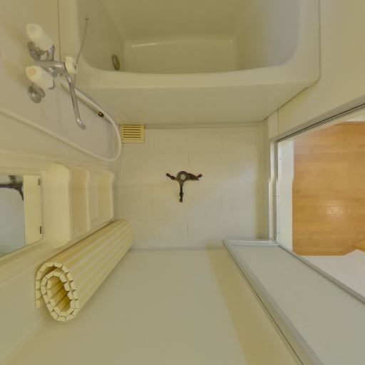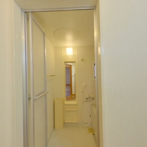 浴室が近接(確度90%):引き戸の先に浴室(シャワー・浴槽・鏡・棚)がある。