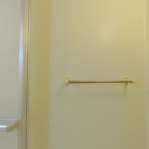 タオル掛けの設置(確度82%):浴室の壁に金属製のタオルバーがある。
