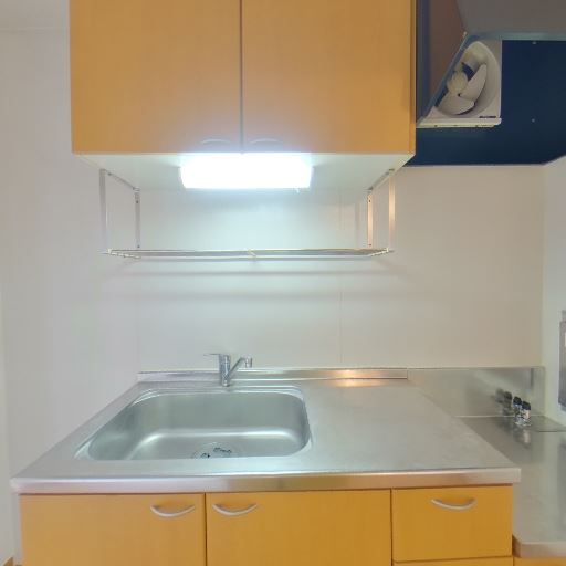 照明設備が充実(確度78%):キッチン手元灯と壁面の蛍光灯カバーの照明がある。