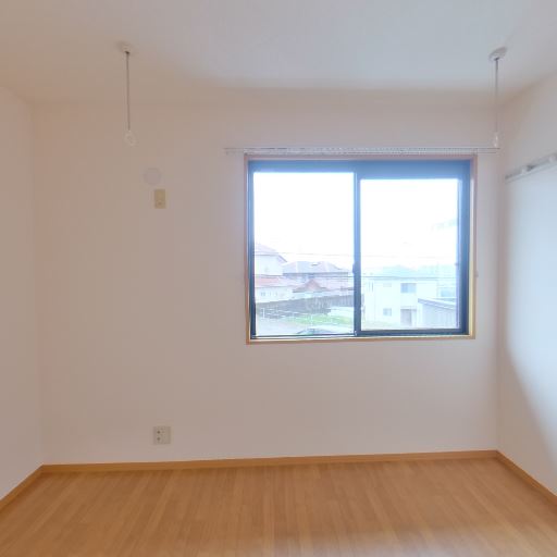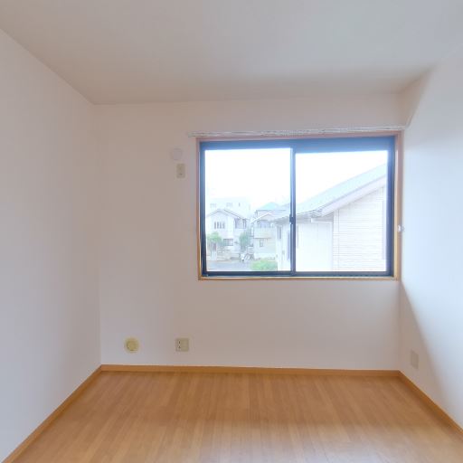 採光の良さ(確度86%):大きめの引き違い窓があり、外景が見えるほどの明るさが入っている。室内全体も白壁で光が回りやすい。