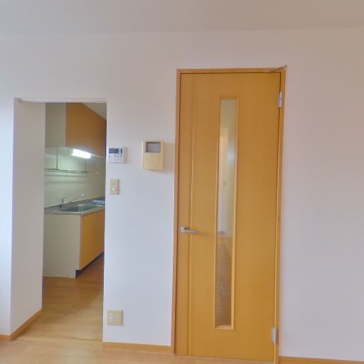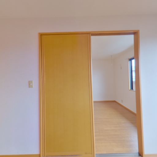 隣室への引き戸(確度68%):引き戸で隣のスペースと仕切れる。引き戸の先はアクセントクロスのある空間が続く。