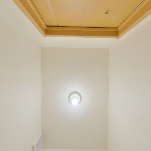 天井設備(確度83%):天井中央に照明用の引掛シーリングがある。天井はフラットで汚れも目立たない。