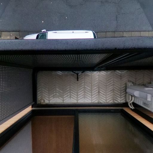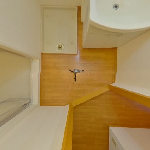 室内洗濯機置き場(確度94%):防水パンと給排水口が見える。