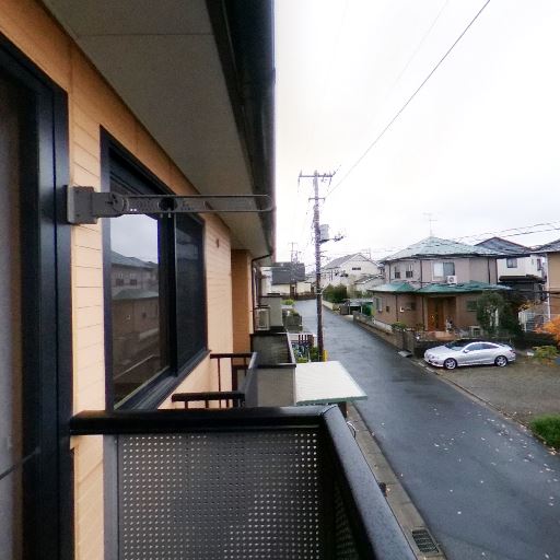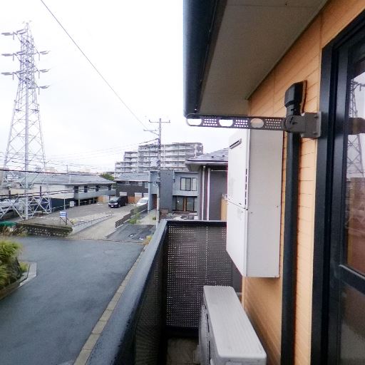 前面が開けた眺望(確度72%):前方は低層住宅と駐車スペースで、視界を遮る高い建物が少ない。