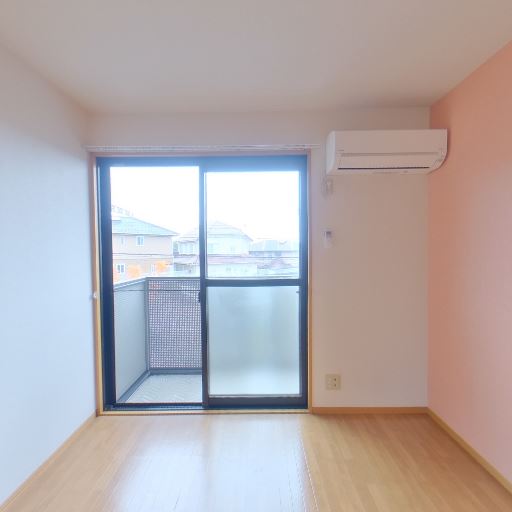 エアコン設置済み(確度92%):室内に壁掛けエアコンが取り付けられている。