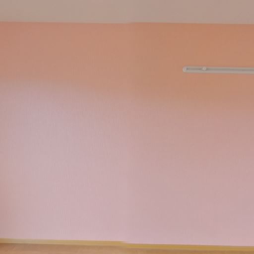 アクセントクロスと室内物干しバー(確度80%):一面がピンク系のアクセントクロスで、上部に物干しバー(ハンガーレール)が備わっている。