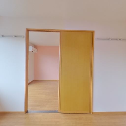 エアコン設置スペース(隣室側)(確度64%):引き戸の向こうの部屋にエアコン本体が見える。こちらの部屋に直接の室内機は確認できない。
