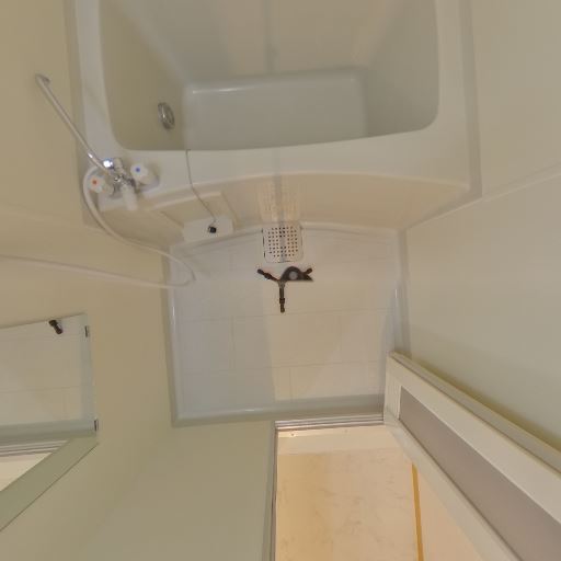 • 浴室であること(確度95%):浴槽・シャワー・浴室ドア・洗面脱衣所への出入口が確認できる。ユニットバス仕様。